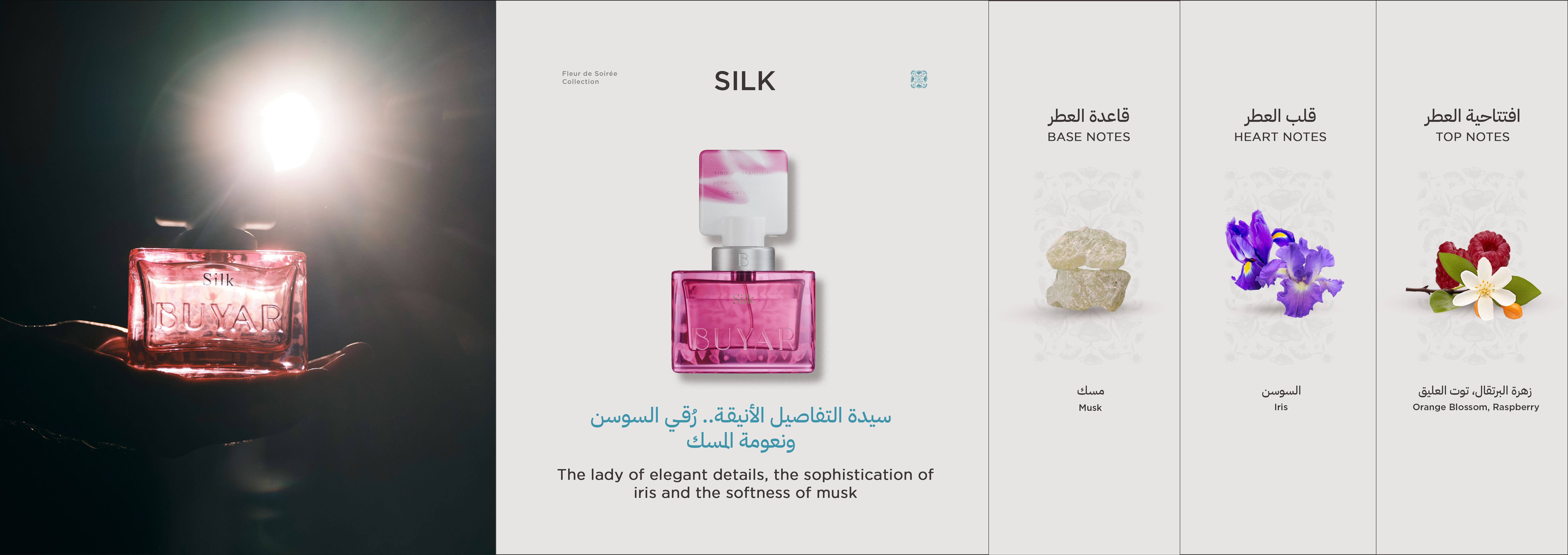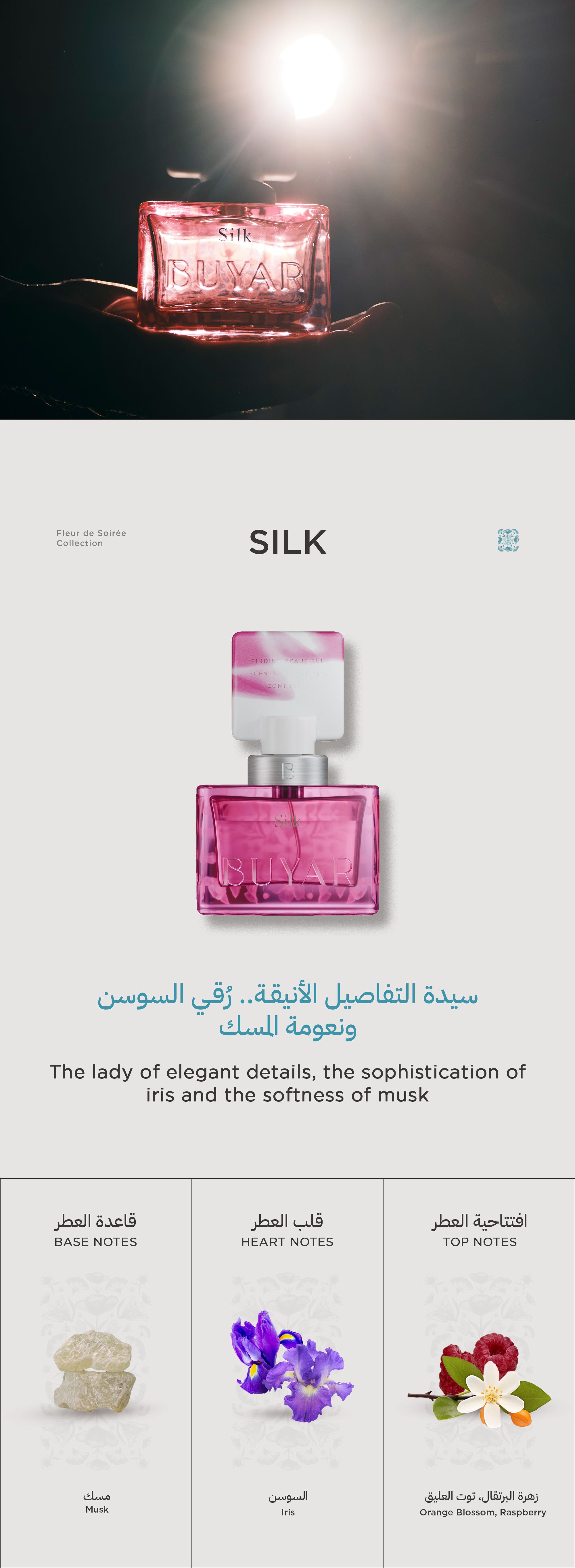 تجسيد للنعومة والرُقي، حيث يخلق إحساساً بالانتعاش والهدوء، بلمسة خفيفة تترك انطباعاً دائماً. الخيار المثالي لمن تبحث عن أسلوب راقٍ يعكس جمالها الداخلي، بطريقة تعبّر عن الأناقة الحقيقية.